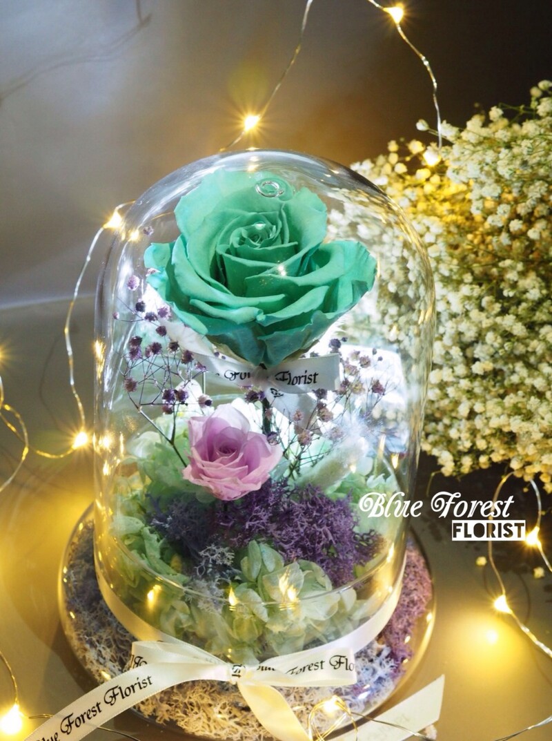 款式6: 保鮮•愛*發光玻璃罩玫瑰保鮮花系列 Tiffany blue色