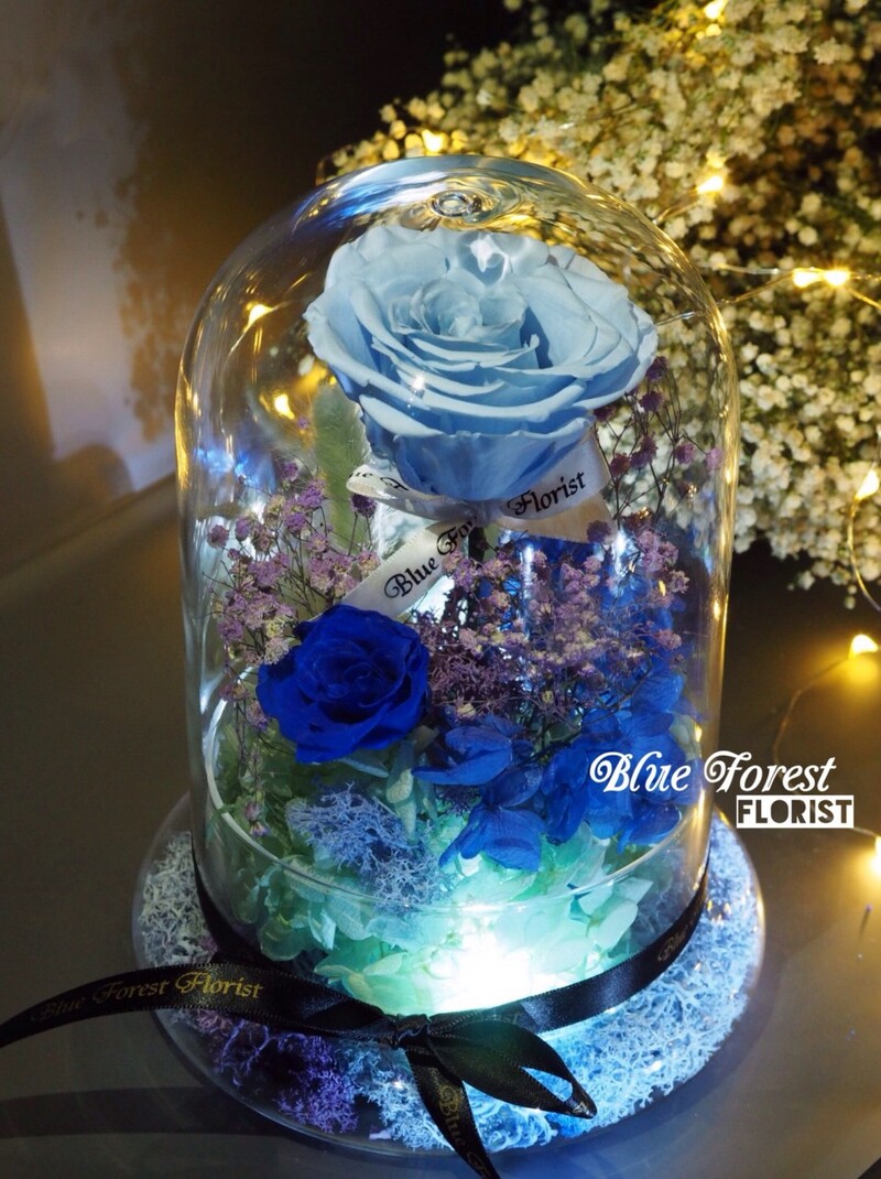 款式5: 保鮮•愛*發光玻璃罩玫瑰保鮮花系列 淺藍色