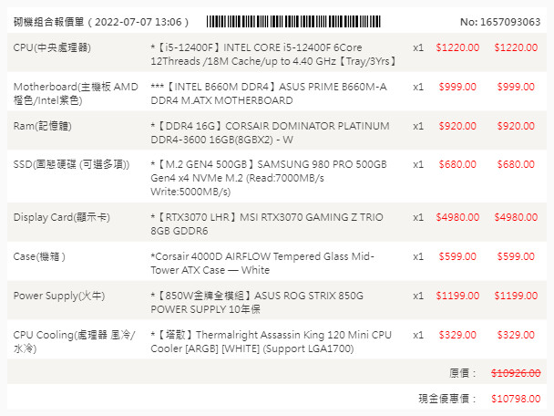 查看我們其他電腦組合圖片 / 特價電腦組合 / 網上自選砌機報價