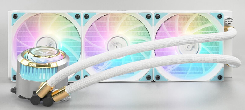 採用自家設計的高性能噴射式水冷頭,搭配 360mm 高密度鋁金屬水冷排和 3 把 V12F 高性能風扇,可提供十分強勁的散熱性能,水冷頭及風扇同時具備 ARGB 燈效,配合使用自家 Sagittarius Control Center 軟件,可展示華麗炫彩的燈光效果。