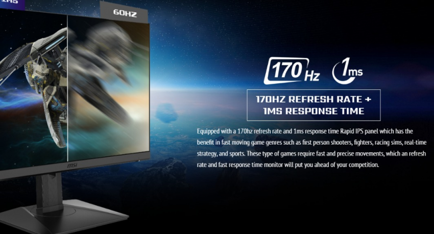 - 170Hz刷新率- 讓影像更加流暢、無殘影