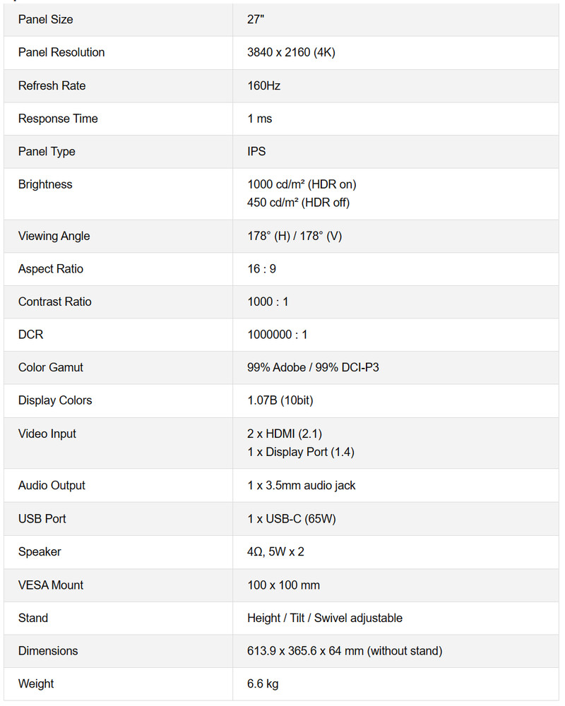 - 豐富的連接性:27M2V-D 4K顯示器採用USB-C(最高65W功率傳輸)、DisplayPort(v1.4)x 1、HDMI(v2.1)x 2接口,可以輕鬆與桌面電腦、筆記型電腦、平板電腦、手機、迷你電腦、Switch、PS5、XBOX遊戲主機等設備配合使用,線長適中,帶給您專業的體驗。