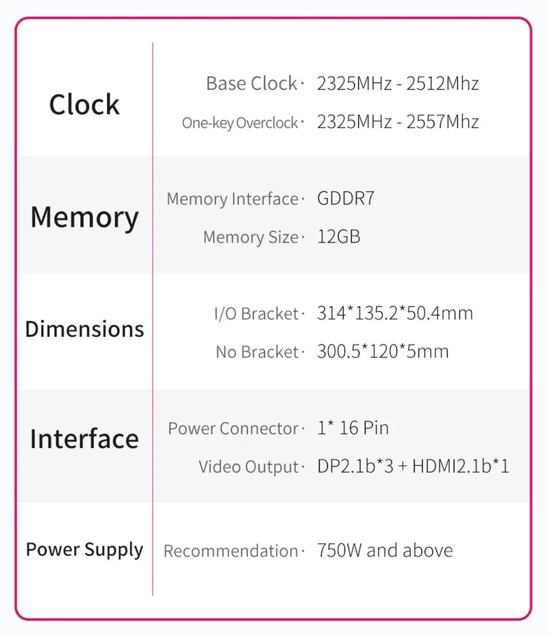 | Core Clock | Base:2325Mhz;Boost:2512Mhz |