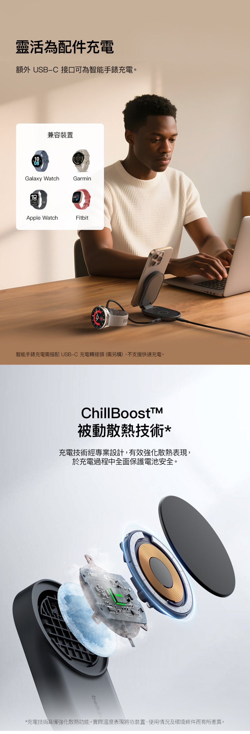 - ChillBoost™ 被動冷卻技術,可在快速充電期間散熱††,保護您的電池