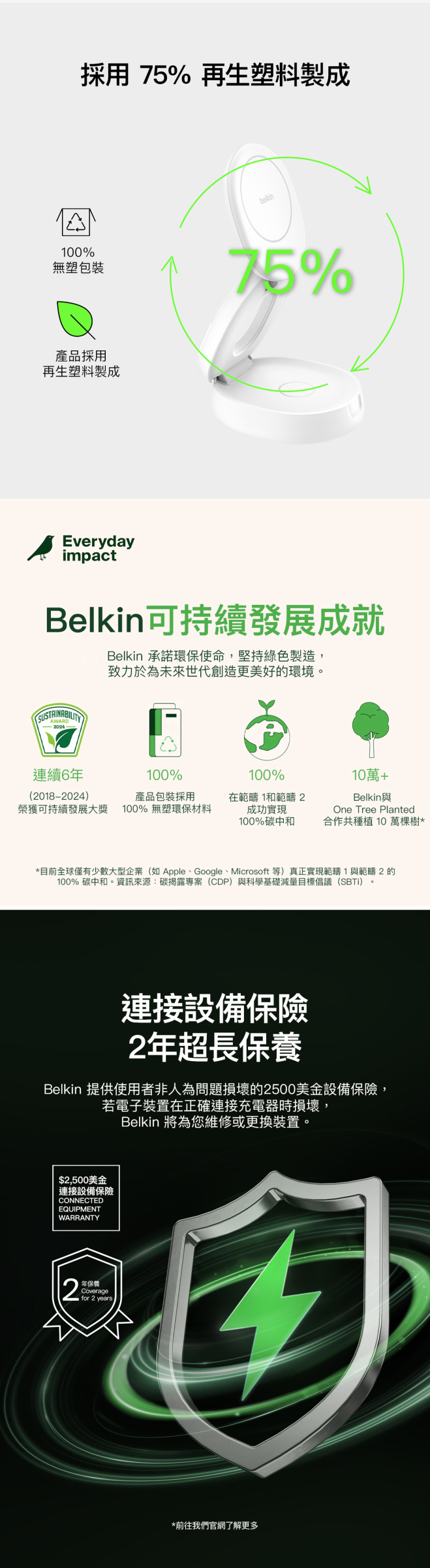 - 享有 2 年 Belkin 連接裝置保養服務†
