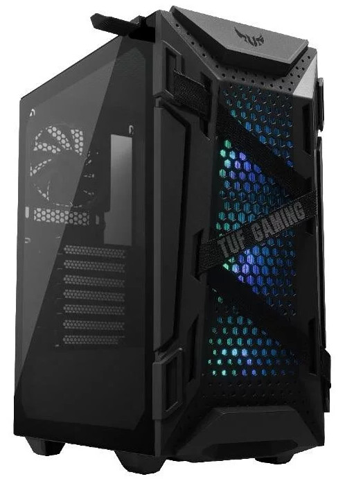 時尚設計:多孔蜂巢狀前面板有助於空氣流通,強化玻璃側板則可展示緊湊機殼中的內部零組件。高效散熱:配備三個 120mm Aura Sync 可編程 RGB 燈效風扇及一個 120mm 後方風扇,