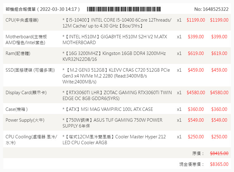 查看我們其他電腦組合圖片 / 特價電腦組合 / 網上自選砌機報價