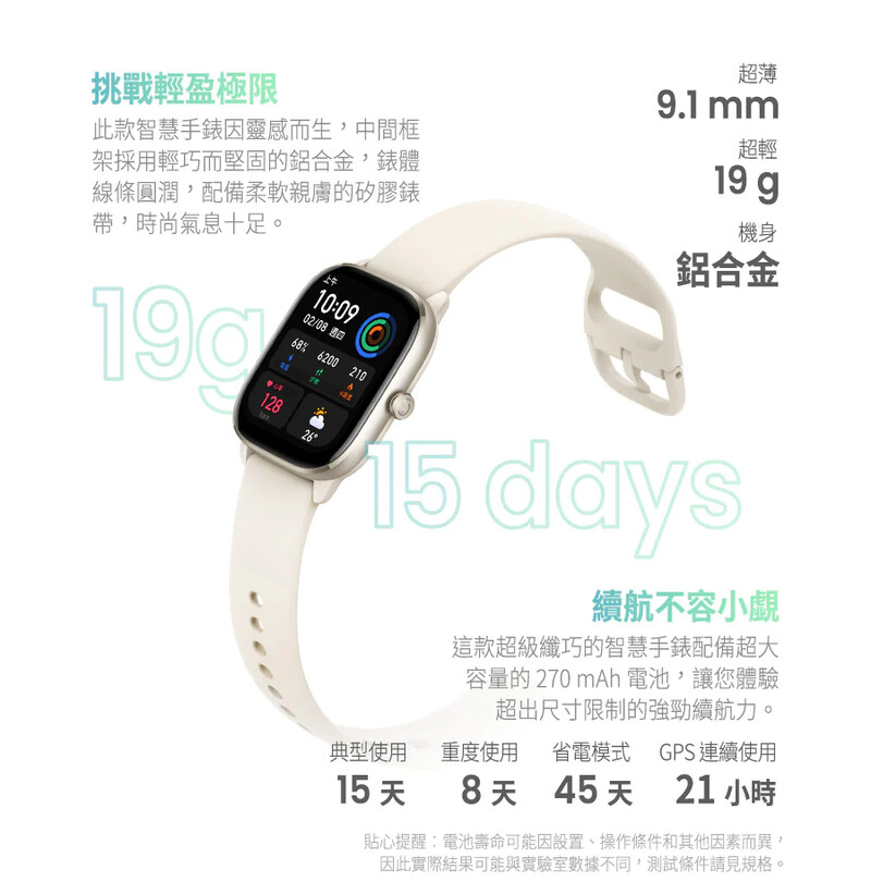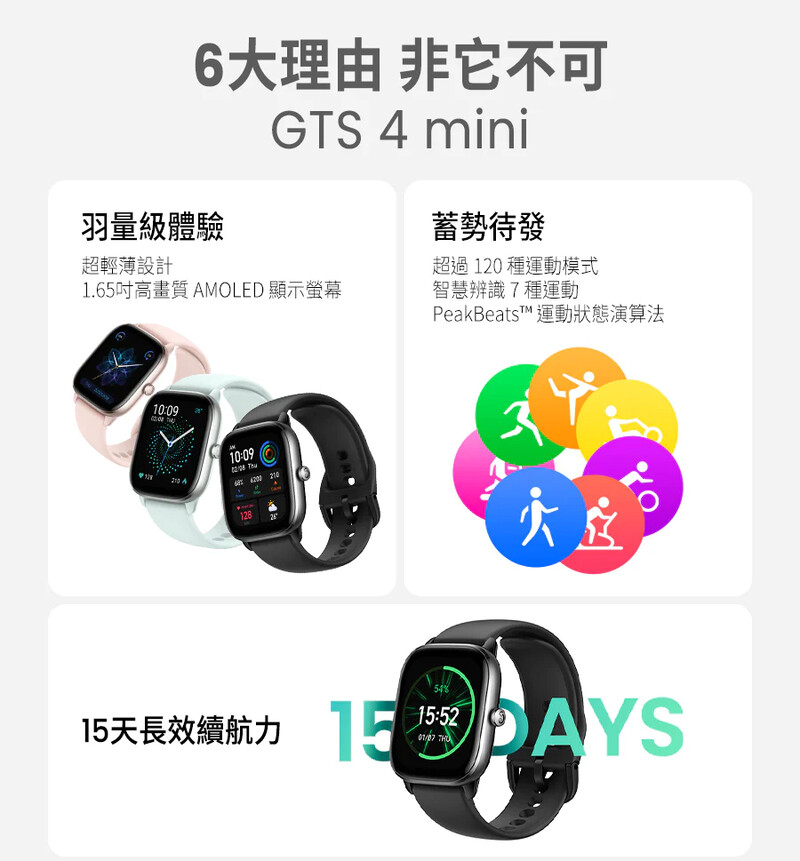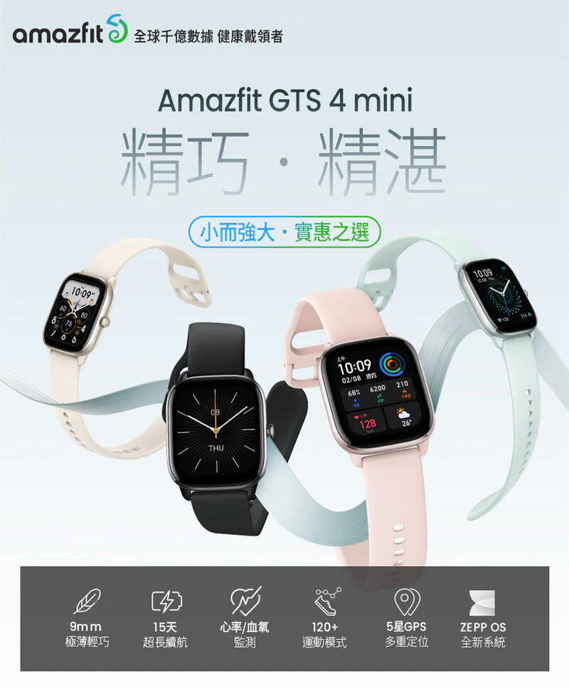 Amazfit GTS 4 Mini 極輕薄智慧手錶