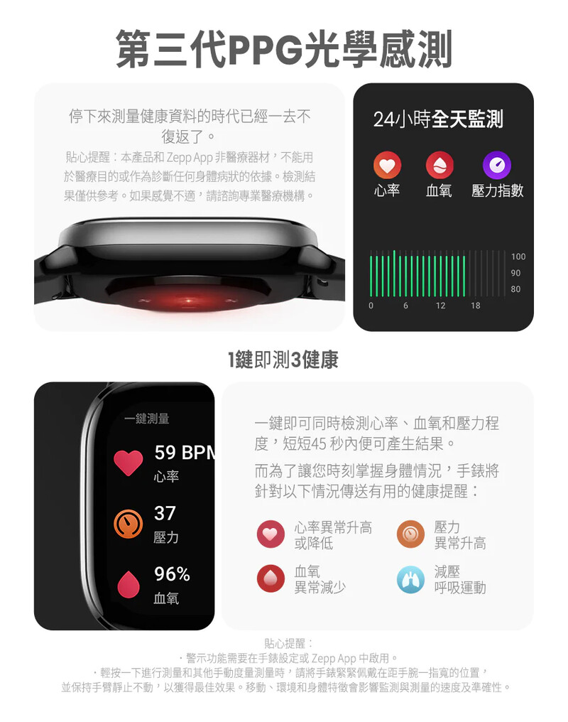・24hr心率、血氧、壓力健康檢測
