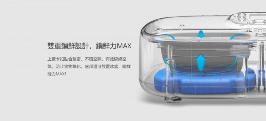 - 上蓋卡扣貼合緊密,不留空隙,有效隔絕空氣,防止食物氧化,底部還可放置冰盒,鎖鮮能力 MAX