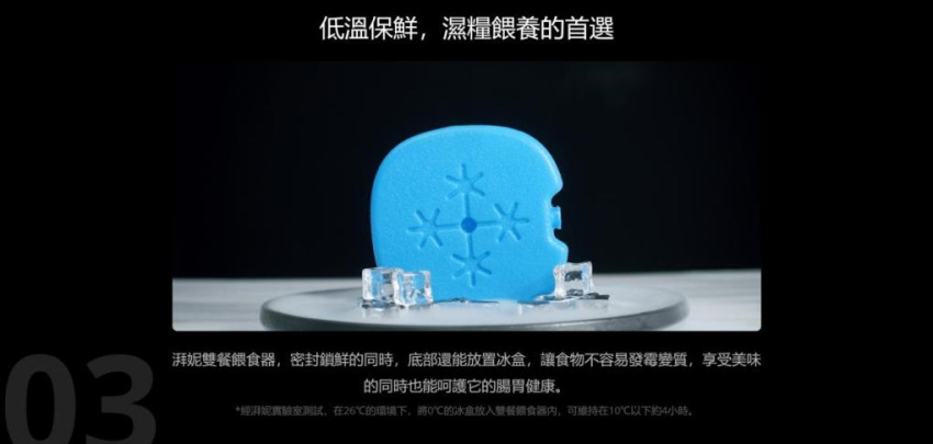 - 湃妮雙餐餵食器,密封鎖鮮的同時,底部還能放置冰盒,讓食物不容易發霉變質,享受美味的同時也能呵護它的腸胃健康