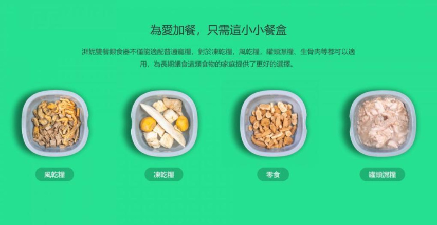 - 湃妮雙餐餵食器不僅能適配普通寵糧,對於凍乾糧,風乾糧,罐頭濕糧、生骨肉等都可以適用,為長期餵食這類食物的家庭提供了更好的選擇