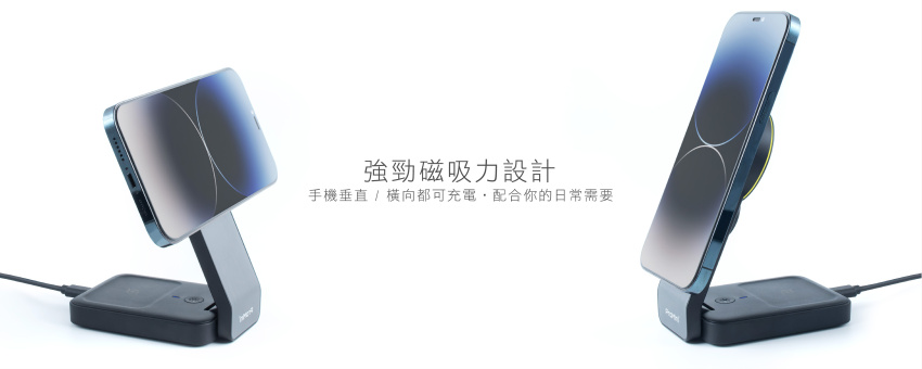 - 強勁磁吸力,手機垂直/橫向都可充電