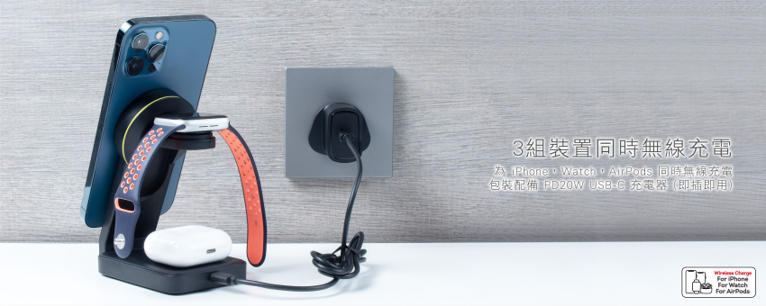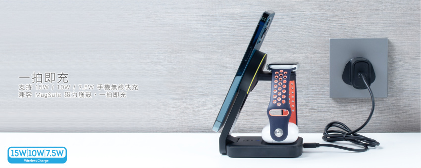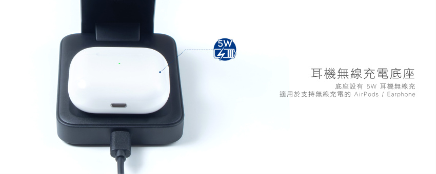 - 底座設有5W耳機無線充,適用於支持無線充電的AirPods/Earphone