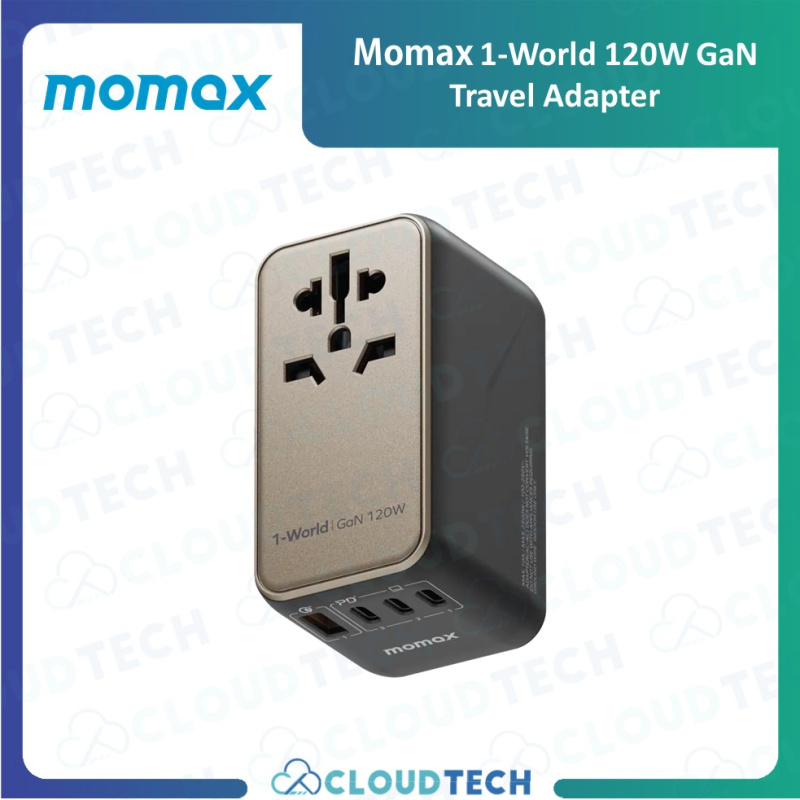 1-World 120W GaN方便式旅行插座備有 1 個 USB A + 3 個USB-C 端口組成, 可同時為4 個設備同時充電。