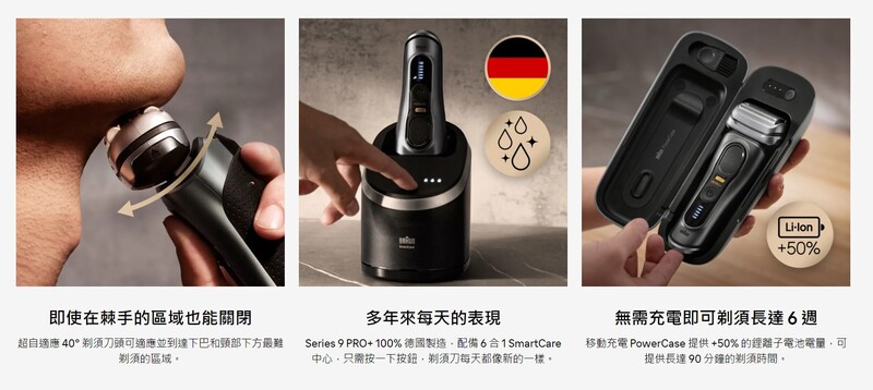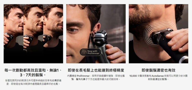 - 人工智能技術: 每秒讀取 13 次鬍鬚厚度,在剃須時自動調節功率。