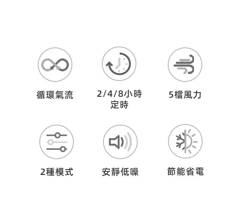 • 適合四季使用:利用循環空氣,流動房間內冷氣或暖氣,提高空調效率,保持舒適。