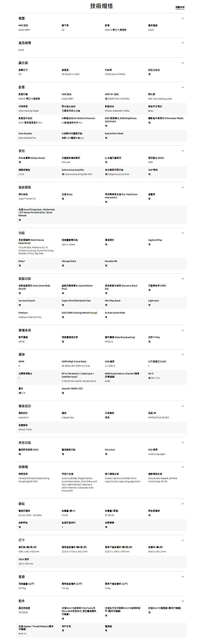 . Samsung 55" OLED 4K S90F 智能電視 QA55S90FAJXZK 55S90F -