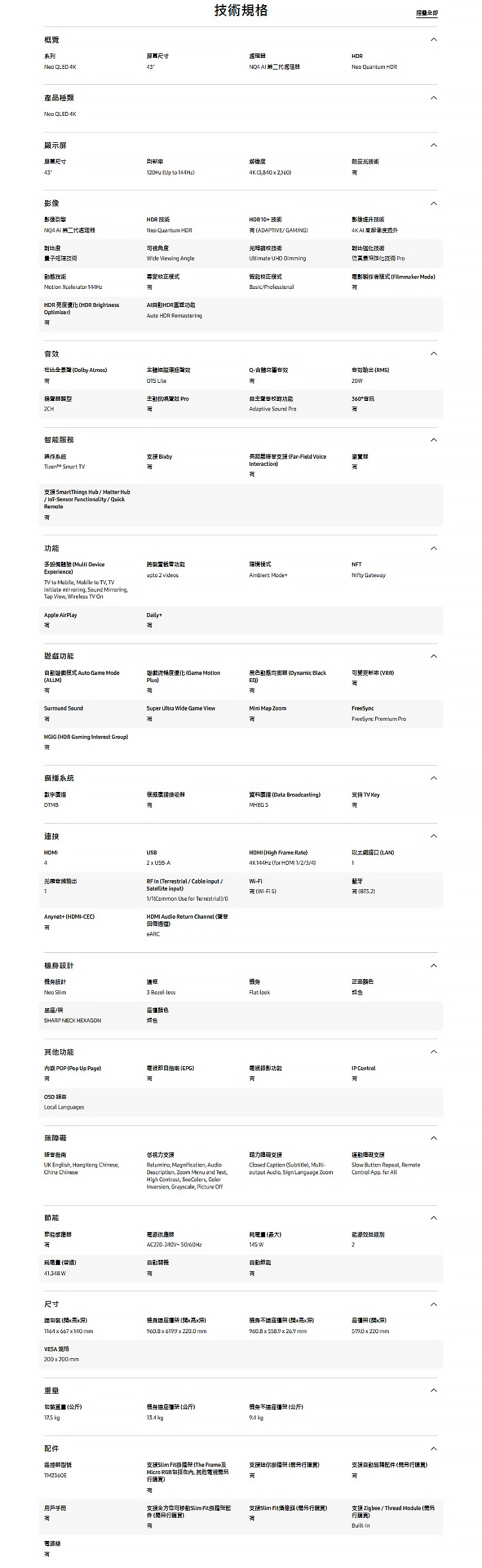 . [CODE後價$4899] Samsung 三星 43" Neo QLED 4K QN90D 智能電視 [QA43QN90DAJXZK] -