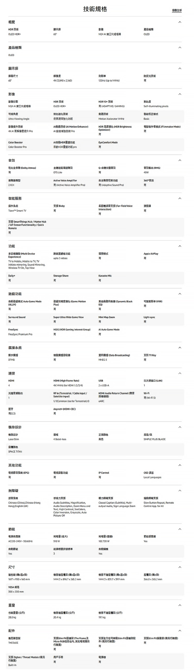 . Samsung 65" OLED 4K S90F 智能電視 QA65S90FAEXZK 65S90F -