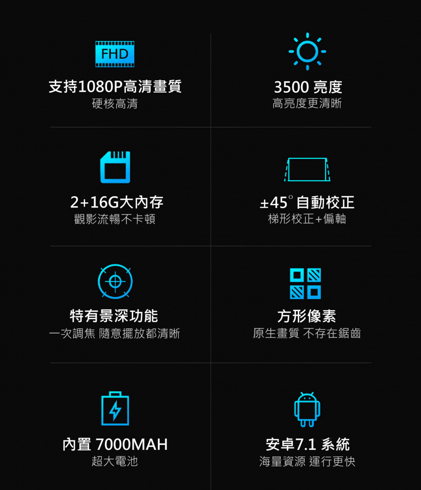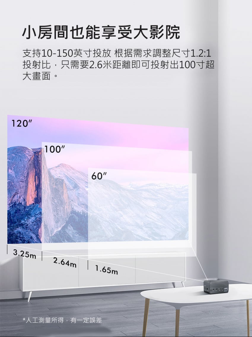 - 投影屏尺寸 7“~200”