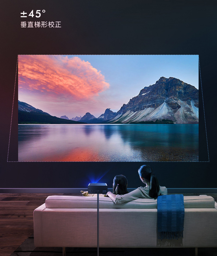 採用全新AI智能梯形校正算法,隨意擺放,畫面始終清晰方正,更快更便捷。