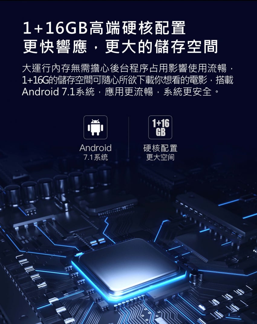 - 內存 RAM:DDR3 1G + ROM閃存16GB(EMMC 5.1)