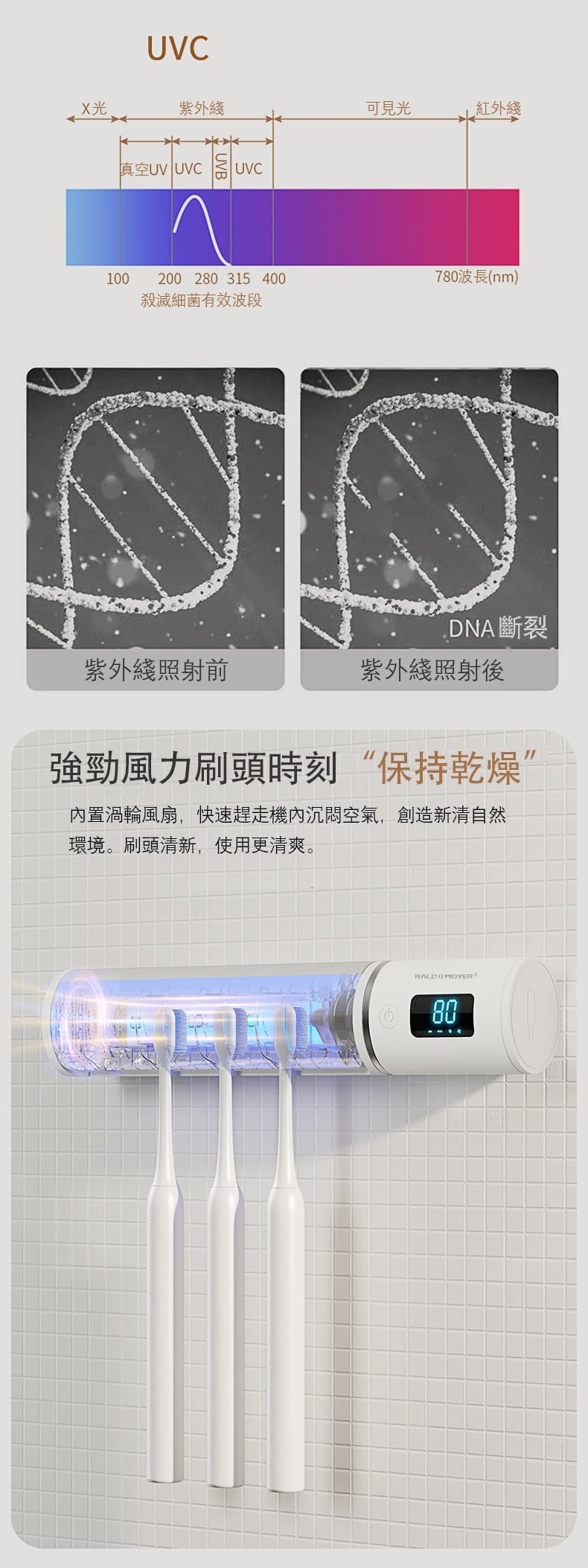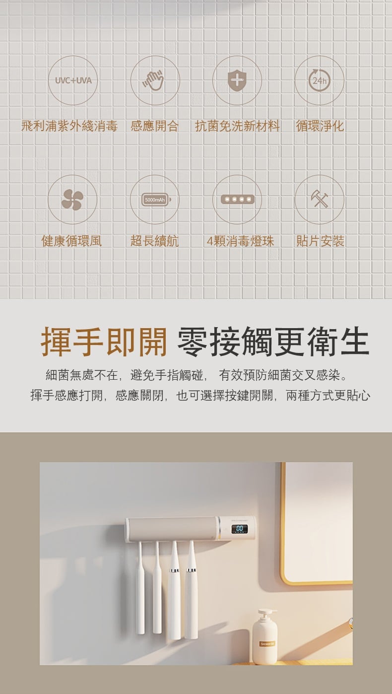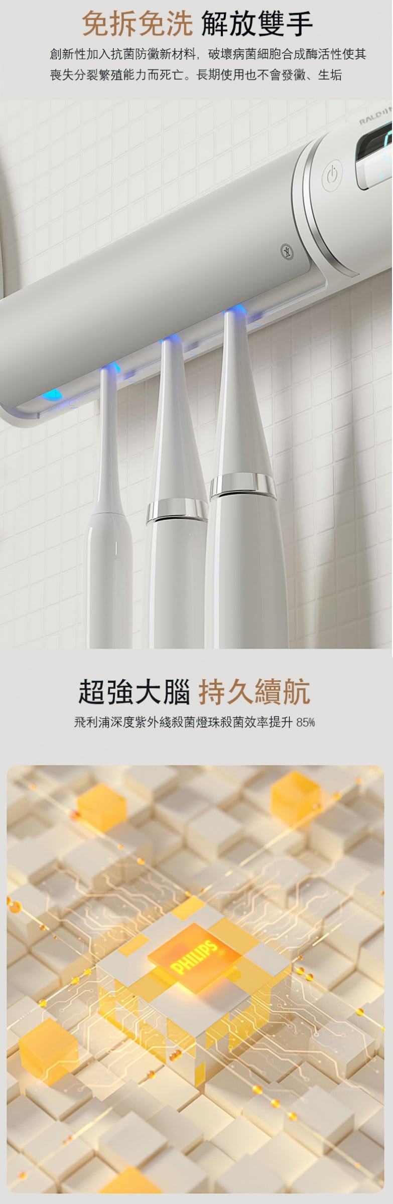 • 五大核心優勢: 紫外光殺菌 風乾模式 智能方案 機身尺寸 續航能力