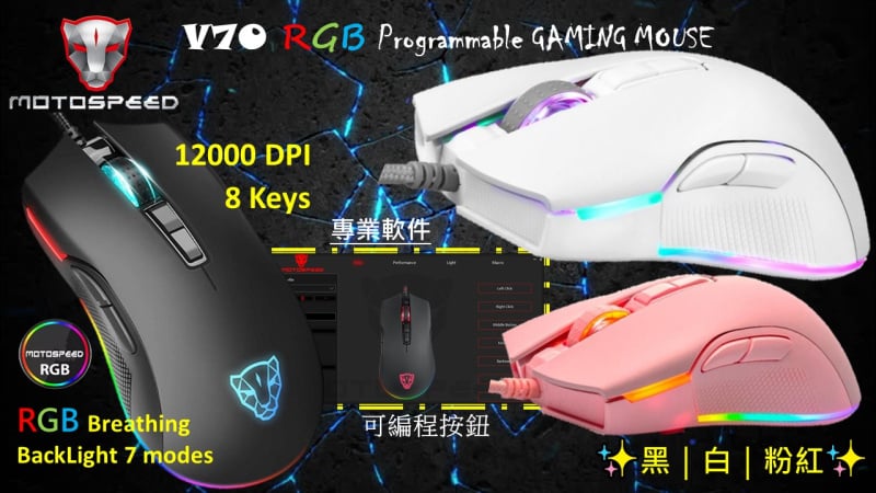 12400Dpi 提高速度和精度,可調 DPI、RGB 呼吸背光效果, 可編程按鈕和宏定義, 設置特殊的操作模式。