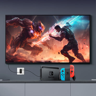 Our Wall Charger is your all-in-one solution, doubling as a hub for your Nintendo Switch gaming console. Charge devices, project to the big screen, and ditch the bulky dock. Streamline your gaming setup and elevate your experience today! Plus, our charger is just 1/5th the size of the Switch dock, delivering ultimate portability.