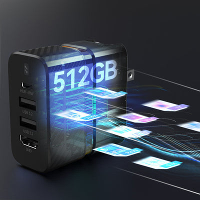 Experience the ultimate convenience with our All-in-One Wall Charger! It's your solution for a mobile workstation, gaming entertainment hub, charging station, and data storage - all in one compact package. Take productivity and entertainment on the go with ease.