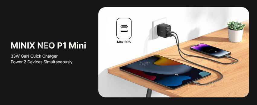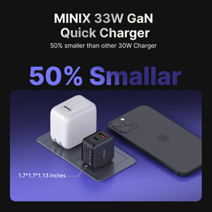 Introducing the Minix P1 Mini, a GaN charger that packs a punch in a remarkably compact size. This tiny powerhouse is 50% smaller compared to chargers with similar output levels. Despite its diminutive stature, it delivers impressive power efficiently, thanks to Gallium Nitride technology. What sets it apart is its robust safety features—multiple protections against over temperature, voltage fluctuations, and short circuits ensure worry-free charging. Its ultra-portable design makes it an ideal travel companion, fitting seamlessly into your pocket or bag. The Minix P1 Mini, a fusion of efficiency, safety, and portability, redefining the charging experience wherever you go.