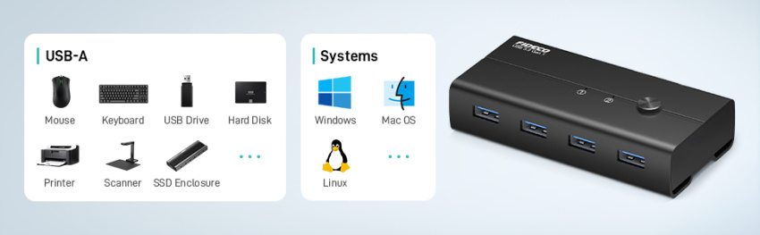 - The USB switch can be also backward compatible with USB 2.0/1.1 to meet your various needs.