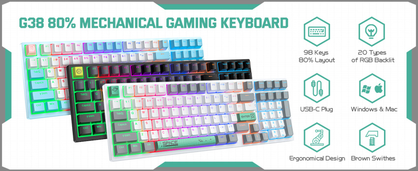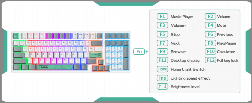 Light effects: 20 types (FN+END switching), 7-color RGB Backlit, 5 brightness levels