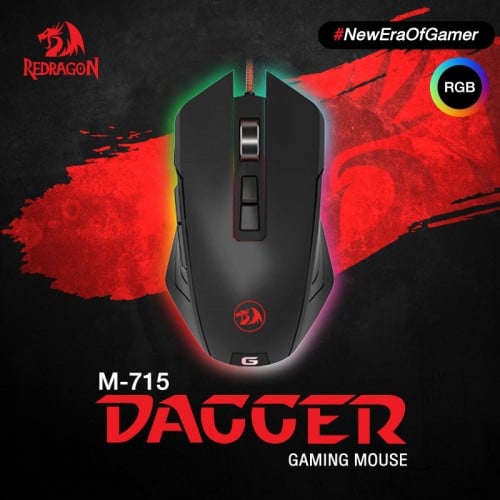 LED RGB BACKLIGHT MMO PROGRAMMABLE PC GAMING MOUSE; 8 MMO user programmable buttons, 5 Memory Profiles each with distinct LED color option for quick identification. Over 16 million RGB LED color options and Breathing Effects. (Backlight can be disabled) The Redragon M715-RGB Gaming Mouse offers you total personalization.