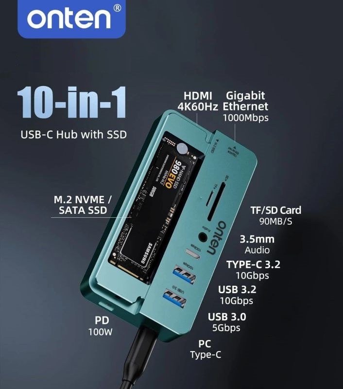 - 【10-in-1 USB-C Hub with SSD Enclosure】It combines a high-speed USB-C hub with an M.2 SSD enclosure, offering versatile connectivity and storage expansion in one device.