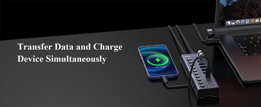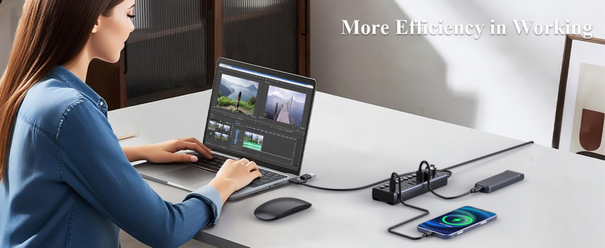Equipped with a 60W (12V 5A) power adapter, the hub provides consistent and sufficient power, ensuring stable operation of 10 devices simultaneously without interruption.