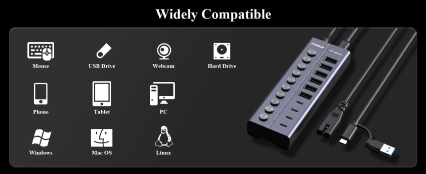 FIDECO USB hub adapter works seamlessly with Windows XP/Vista/7/8/10/11, macOS, Linux and so on.