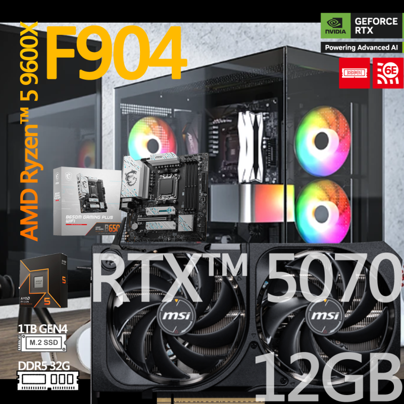 F904 樂天電腦 AMD RYZEN 遊戲组合 [ AMD RYZEN5 9600X /RTX5070 12G /D5 6000 32GB / 1TB SSD ] $11488
