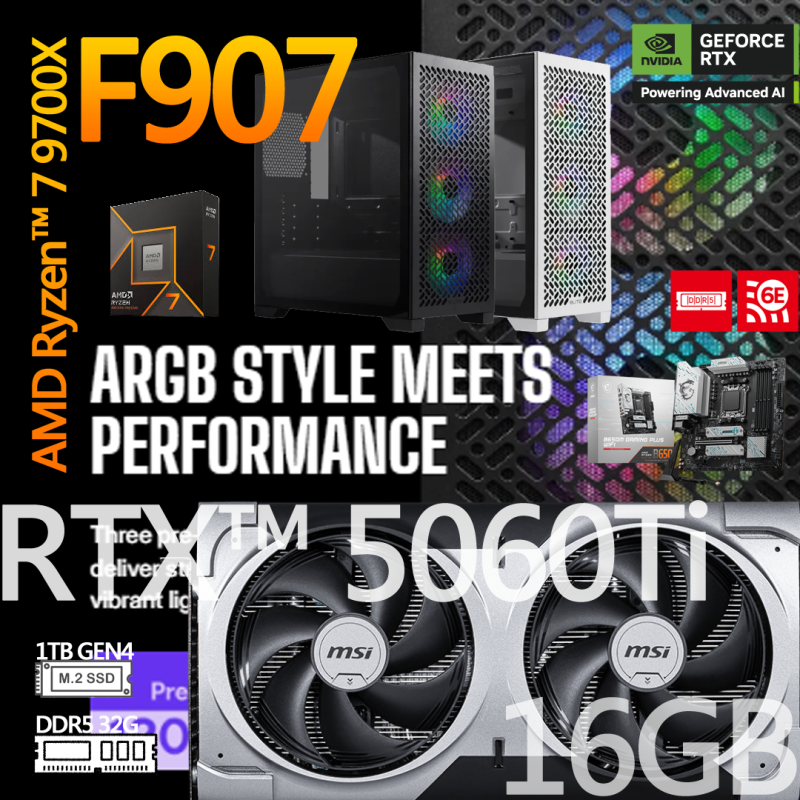 F907 樂天電腦 AMD RYZEN 遊戲组合 [ AMD RYZEN5 9700X /RTX5060Ti 16G /D5 6000 32GB / 1TB SSD ] $10888