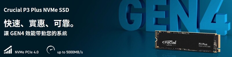 • 儲存設備 : Crucial 1TB P3 Plus M.2 2280 CT1000P3PSSD8 PCIe Gen4x4 SSD ( 升級優惠 : 2TB +$380 )