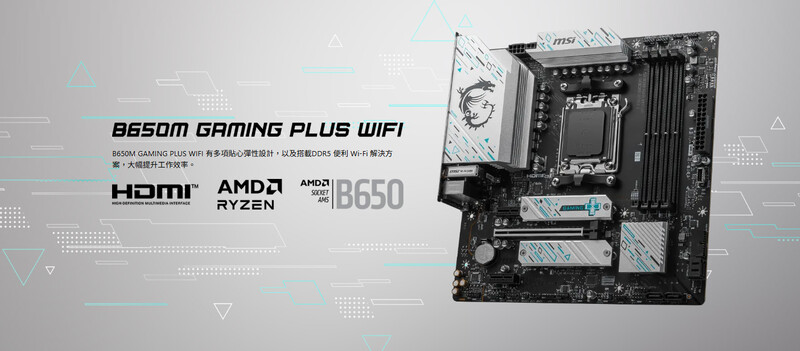 • 主機板 : MSI B650M GAMING PLUS WIFI DDR5,Socket AM5 ,DDR5, 2.5GbE, USB3.2 Gen1 Type-C,Socket AM5, mATX M/B