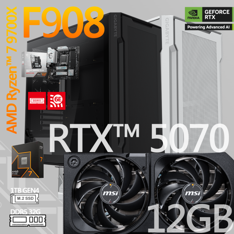 F908 樂天電腦 AMD RYZEN 遊戲组合 [ AMD RYZEN5 9700X /RTX5070 12G /D5 6000 32GB / 1TB SSD ] $11888