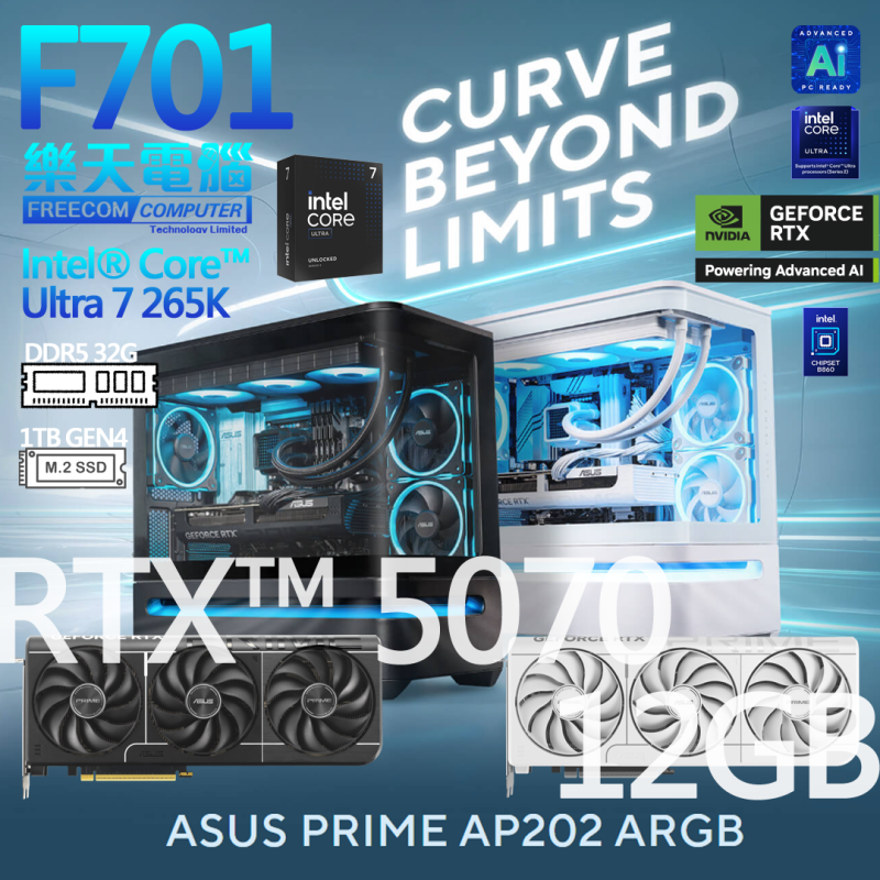 F701 樂天INTEL X ASUS RTX5070 PRIME遊戲组合 [ INTEL i7-265K/ RTX 5070 12G/ D5 6000 32GB/ 1TB GEN4 SSD] $13688