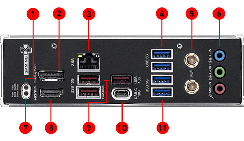 | Onboard Graphics | 1x HDMI™ Support HDMI™ 2.1, maximum resolution of 4K 60Hz* 1x DisplayPort Support DisplayPort 1.4, maximum resolution of 4K 60Hz* *Available only on processors featuring integrated graphics. Graphics specifications may vary depending on the CPU installed. |