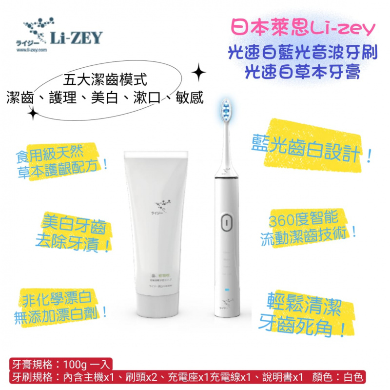 - 可搭配萊思光速白草本牙膏,加強美齒效果