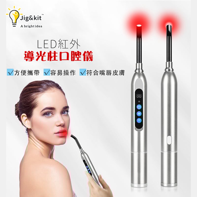 包裝清單:導光柱口腔儀、USB電源線、英規適配器