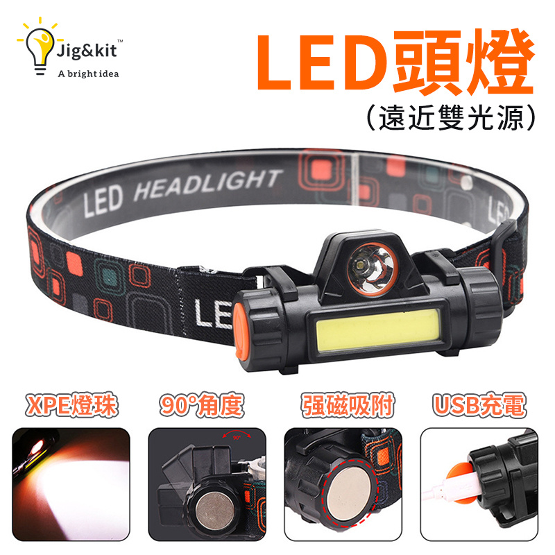 單擊燈體側邊開關按鈕,按一下為XPE燈芯亮為遠射燈,再按一下為COB燈珠亮為近光燈。在亮燈情況下長按開關按鈕可調亮度