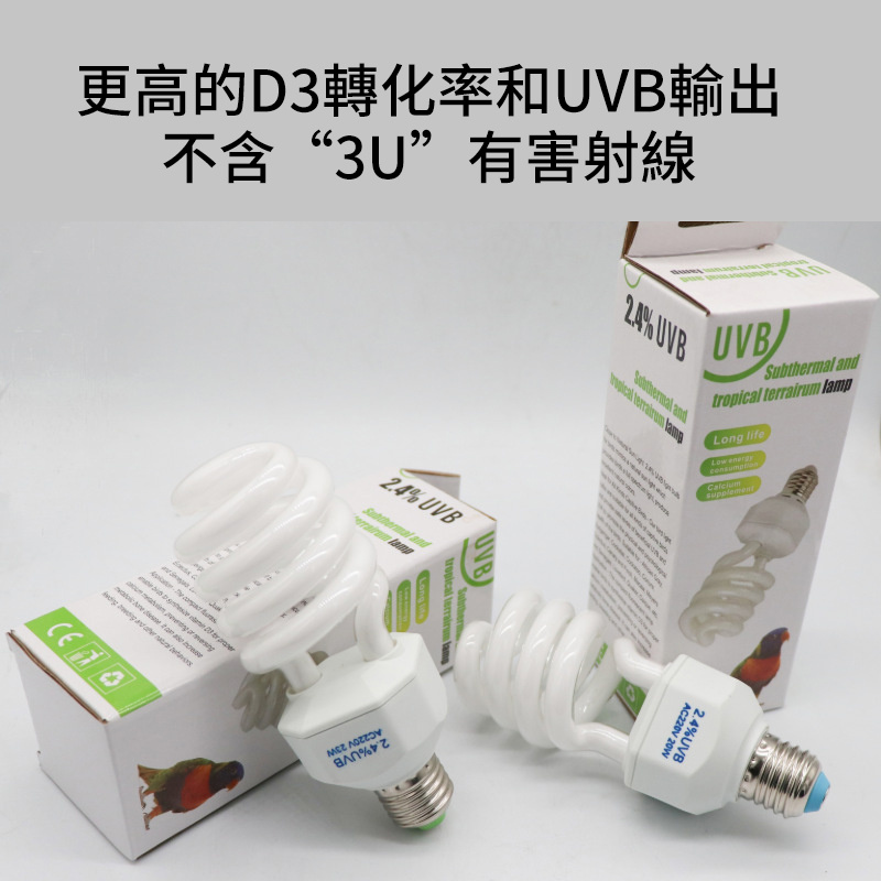 ●接近自然太陽光2.4% UVB鳥類燈泡模擬自然太陽光,為鳥類提供全光譜光,產生出色的自然色彩