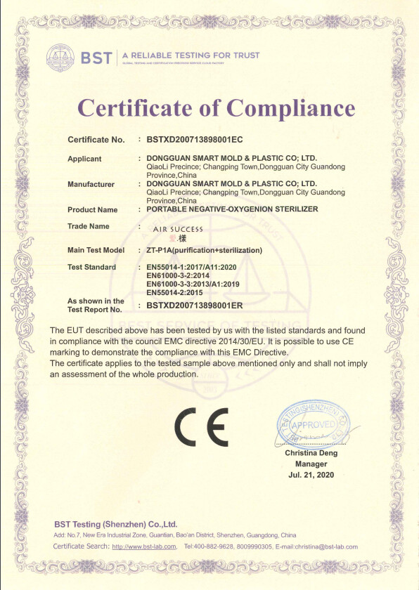 負離子強度:≥2000萬 ions/cm³